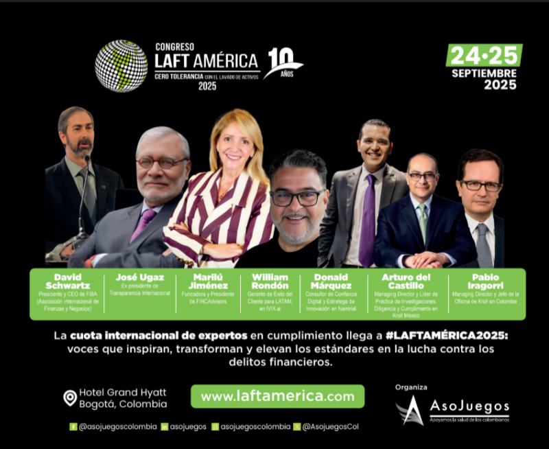 Bogotá, septiembre de 2025 – El Congreso antilavado de activos y financiación del terrorismo más importante del sector real llega a su décima edición. En efecto, Asojuegos, el gremio que reúne a las empresas más relevantes de los juegos de azar y las redes transaccionales, desarrollará por décimo año consecutivo el Congreso LAFT AMÉRICA: Cero Tolerancia con el Lavado de Activos, lo que ha consolidado a esta industria como abanderada en la lucha contra estos flagelos.